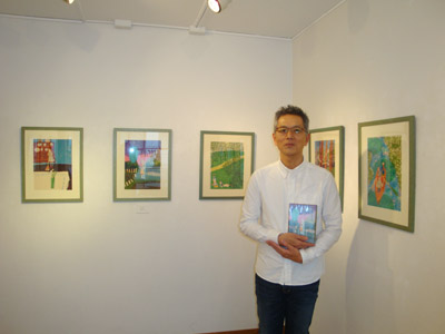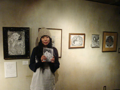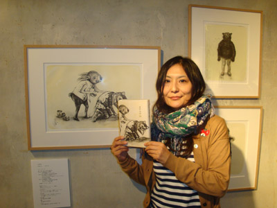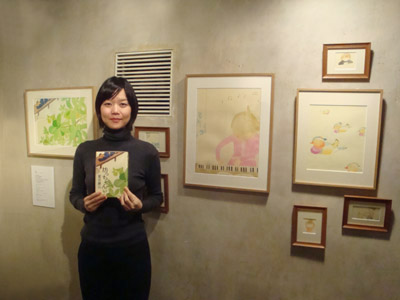 グランプリ受賞のいしまさみつるさん。「赤毛のアン」以外に「雪の女王」をテーマにした作品、オリジナル絵本の原画と手製本も展示しました。(装画コンペvol.5で審査員賞を受賞されています) |