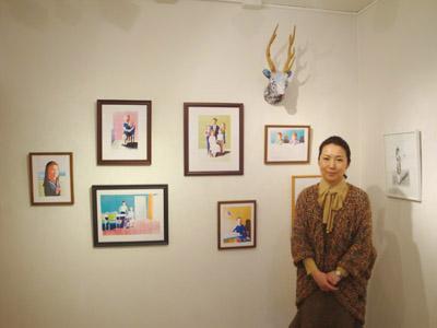 | コンセプトは「部屋」のような空間ということで、ギャラリーの3つの壁面それぞれを異なるイメージで構成。 人物の肖像や風景画、布で作られた動物の剥製(トロフィー)などを 部屋の壁を飾るようにレイアウト、一点一点の作品はもちろん ギャラリー全体に生まれるプライベートな空気感を楽しんでいただきたいとのことでした。 |