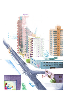 | 鉛筆で描いた原画をもとに、Photoshopなどを駆使して制作。ビビッドな色彩が使われている印象が強いのですが、画面からは静かな緊張感のある時間の流れを感じます。 |