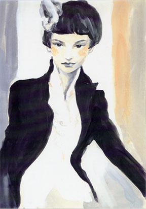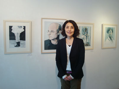 | 人物像をしっかりと描くようになったのはイラストレーション青山塾で学びはじめてから。いつも写真を参考にされるそうで、展示した作品の中にはジャン=ポール・ベルモンドやウッディ・アレン、フランソワーズ・サガンのポートレイトも見られました。 |