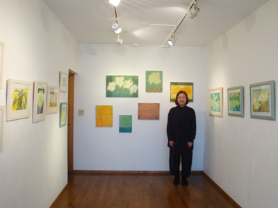 透明水彩とグアッシュ、パステルの作品を中心に、 日本画とガラス絵も展示。 画材によって異なる画面の雰囲気や色彩をお楽しみいただき、様々な花々がギャラリー中に夢のように咲いた一週間でした。