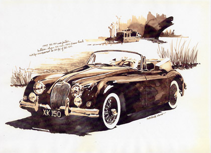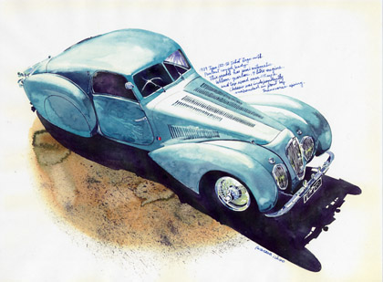 「今の時代にはあまり役に立たないけれど、楽しく美しい、古いものの魅力を描き続けていきたい」とおっしゃる岩澤さん。 そのシリーズの一つとして今回は様々なクラシック・カーが描かれました。 |