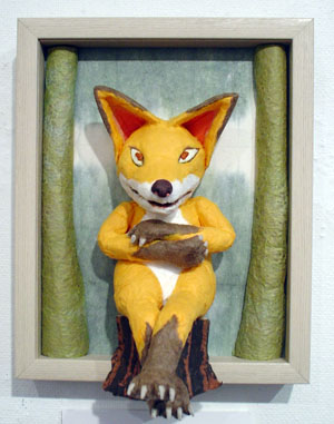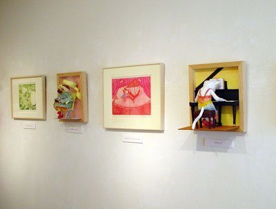山田さんは名古屋在住。東京での初めての個展だった今回、銅版画と和紙の立体で大好きな動物の世界を表現されました。 |