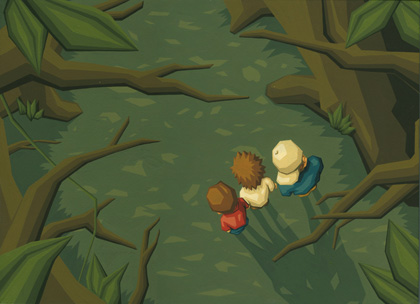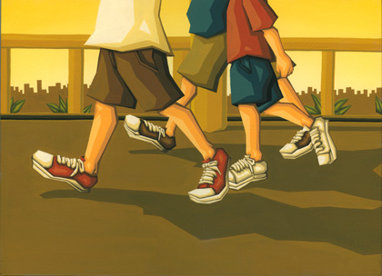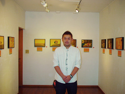 アクリルガッシュを使用して、直線的なラインとグラデーションを重ねることで立体感を表現しています。少年達の表情がイキイキと描かれていました。 絵本を意識して連作で制作したのは今回で2回目。たくさんの絵本をみて研究されたとのことです。 今後は絵本と併行してイラストレーションの仕事にも本腰を入れて働きかけていきたいとのことでした。 ■http://homepage2.nifty.com/poncots/ |