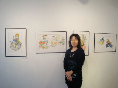 MAKOさん にとってイラストレーターとしての活動25周年という記念の年に、9年ぶりの展覧会です! お仕事先の方、イラストレーターの友人、ファンの方、講談社フェイマススクールズの生徒さん…と展示楽しみにしていてくださった多くのお客さまがみえました。 |