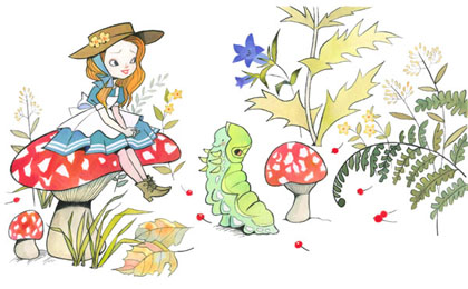| MAKOさんテイストの星の王子さま、アリス、人魚、一寸法師などのファンタジックな作品、ハンサムな今どきの男の子たちなど、これまでのイメージを心地よく裏切る作品19点が並びました。 |
