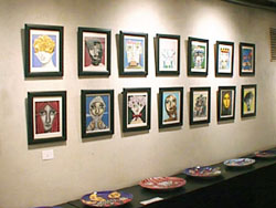 | 隣接するスペースのMAYA2では、これまで仕事に使われたもの中から20数点の原画を中心に展示。開放的な表のスペースとはガラリと違った密室感のある静かな雰囲気の中で、ゆっくりと作品をお楽しみいただきました。 |