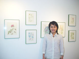 これまで彼女の作品に登場していたのは、味のあるちょっとユニークな人物が多かったのですが、最近は敢えて「美しい人」を描くことを意識されているとのこと。花々と、その化身のような少女、女性たちの作品は幻想的なムードも漂い、大変好評でした。
