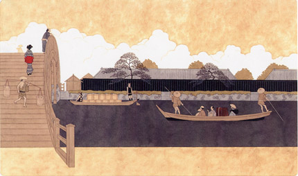 | その他、この3年間に手がけた書籍の装幀画の中から14点を展示。 ひたすら真面目に時代考証に取り組み続けてきた宇野さんの描く江戸の美しい原画をじっくりとお楽しみいただきました。 |