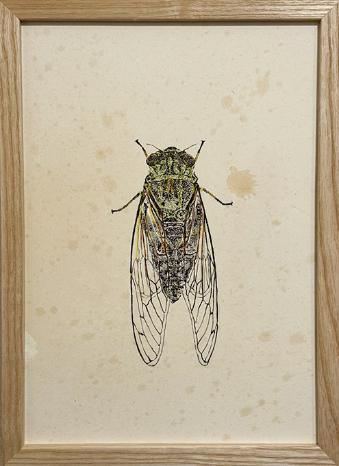 桃山鈴子『六四五七五 虫の絵と俳句』原画展(2026年3月)展示作品より。