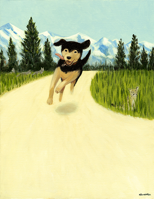 新潮社文庫「名犬ベラの650kmの帰宅」の装画の為に描いた絵です。