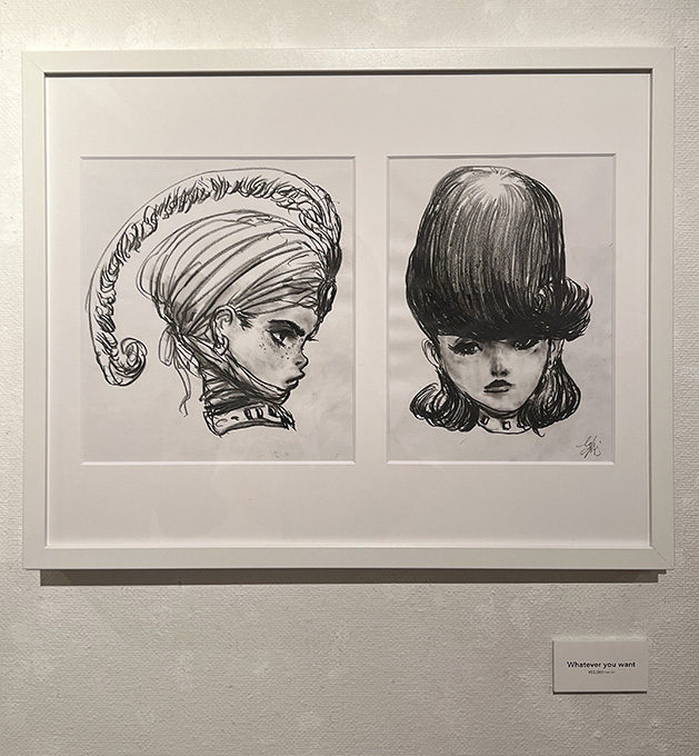 紙にダーマトグラフ。2点の原画が一つの額に収められています。